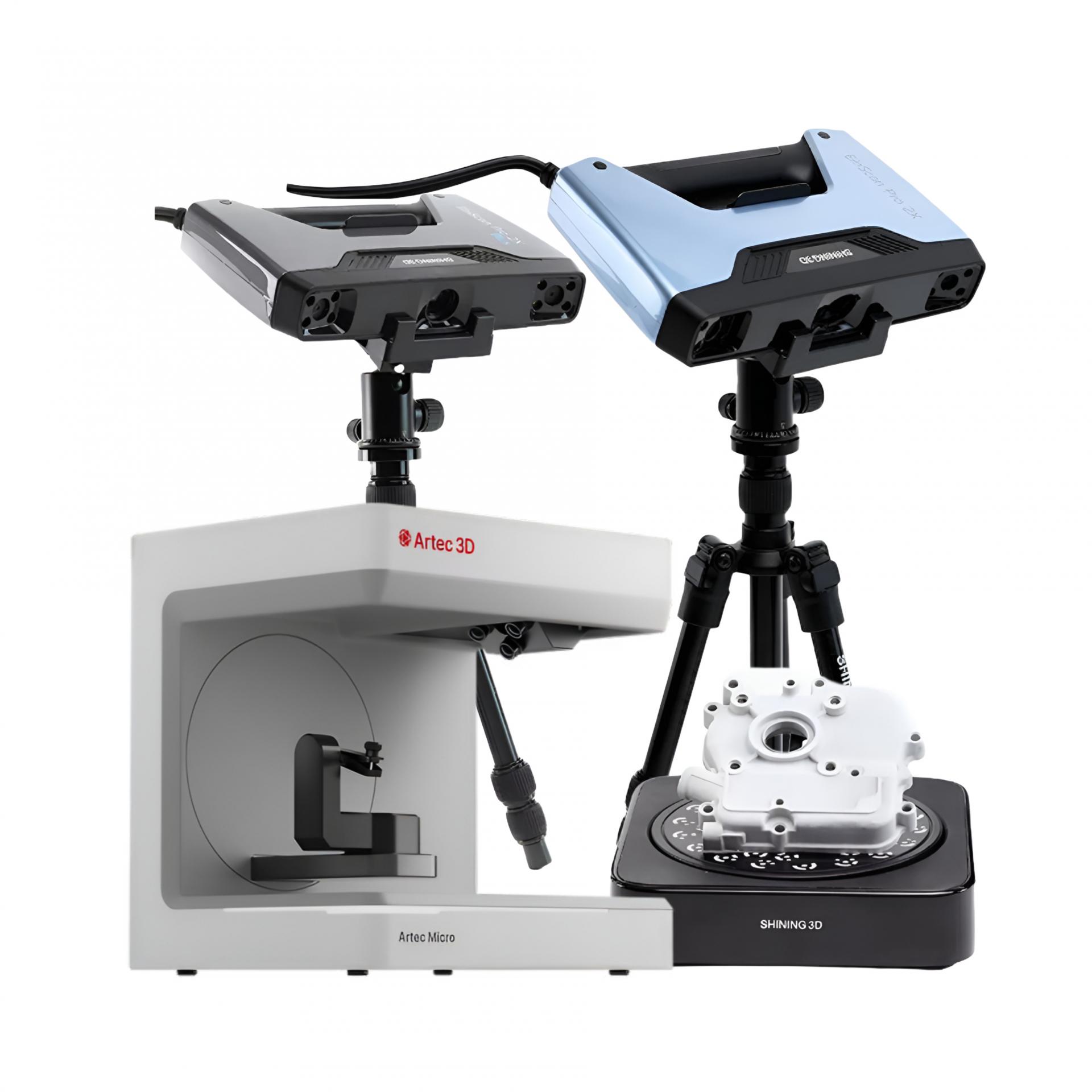 데스크탑 3D 스캐너는 고정형의 소형 3D 스캐너를 말합니다. 말 그대로 데스크탑(책상) 위에 두고 사용하기에 문제가 없는 스캐너로 교육 용도의 저가형 3D 스캐너인 EinScan SE 모델부터 3 in 1 의 EinScan Pro 2X 모델과 의료용에도 적합한 Artec Micron ll 까지 가격과 용도에 따른 다양한 3D 스캐너를 공급하고 있습니다.