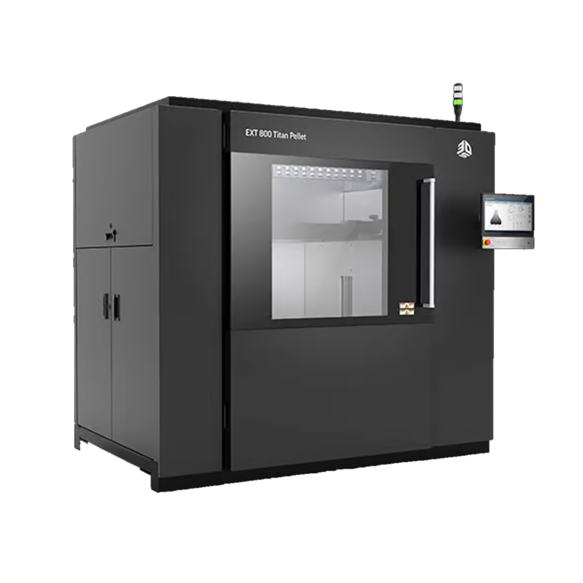 EXT 800 Titan 펠릿은 EXT Titan 펠릿 시스템의 제작 용량이 필요하지 않은 조직을 위해 3D Systems의 펠릿 압출 프린팅 속도, 안정성 및 효율성을 활용합니다. EXT 800 은 주조 패턴 및 제조 고정 장치에서 보철 및 내구성 제품에 이르는 응용 분야를 통해 까다로운 산업 생산의 문제를 해결할 준비가 되어 있습니다. EXT 800 은 용접된 강철 프레임, 산업용 CNC 컨트롤러, 모든 축의 서보 구동 볼 나사 및 능동 가열식 밀폐형 제작 챔버를 갖춘 신뢰할 수 있는 적층 제조 를 위해 제작되었습니다. 대형 터치스크린 HMI를 통해 프린터 기능에 손쉽게 액세스할 수 있는 한편 도어 인터록 및 소재 공급량 감소 감지와 같은 안전 기능으로 안전하게 작동할 수 있습니다.