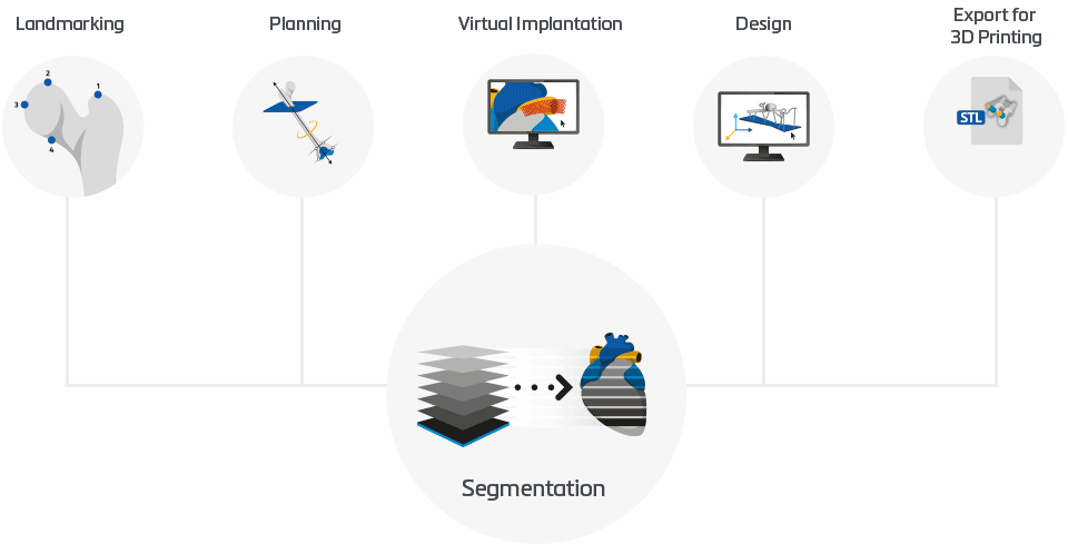 의료영상분할기술 소프트웨어를 기반으로 확장 가능한 다양한 모듈을 갖춘 통합 BME(Bio Medical Engineering) 솔루션을 제공하는, 14,000개 이상의 동료 검토 논문을 발표한 업계 최고의 소프트웨어입니다. 인체 CT, MRI영상 등 의료 영상 데이터를 기반으로 3D 모델을 구현하여 이를 분석, 계측하고 나아가 맞춤형 의료기기 설계 및 3D프린팅을 위한 최종 데이터 취득을 위해 사용되는