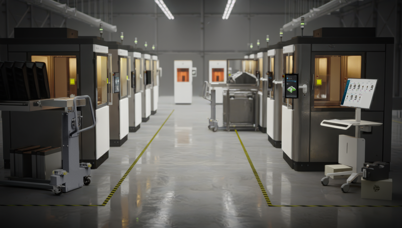 SLA 750은 언제든지 가능한 다운스트림 자동화와 로봇 호환성을 기본적으로 제공하여 작업 오프로딩, 세척, 온보딩으로 구성되는 프린터 워크플로 완전 자동화를 포함한 24/7 철야 가동이 가능합니다. 또한 SLA 750은 로봇 접근이 가능한 챔버 핸들, 고정식 START 및 STOP 버튼, 기존 CNC 머신과 비슷한 로봇 사이클 시작 컨트롤, 자동 병 또는 벌크 소재 이송 및 연결 포트가 기본적으로 장착됩니다..