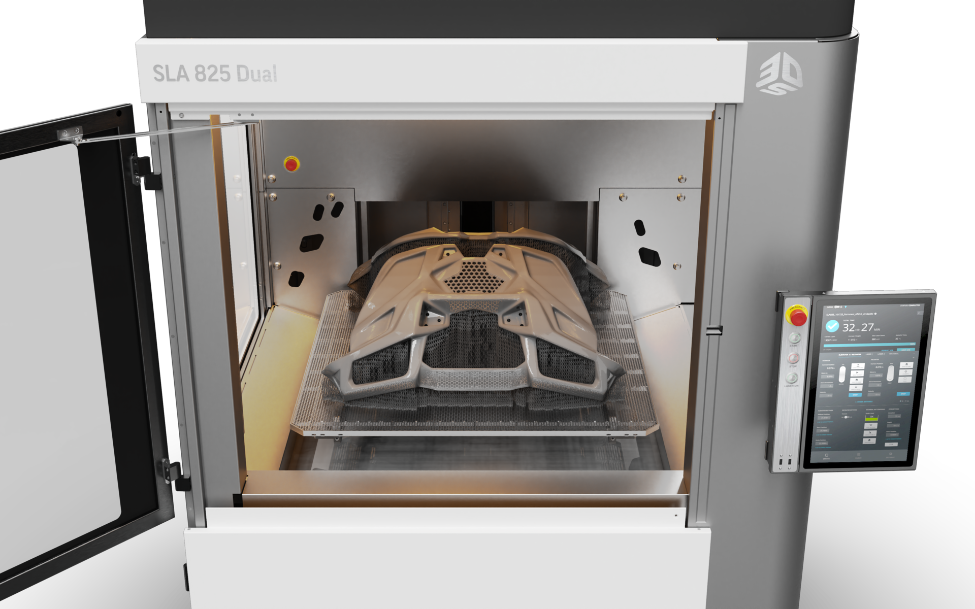 PSLSLA 825 Dual은 대형 부품을 고속·초정밀로 제작하기 위해 설계된 차세대 산업용 대형 프레임 SLA 시스템입니다. 복잡한 형상의 부품을 대량으로 생산해야 하는 시간 집약적 산업 분야를 위해 설계되었으며, 동기식 고출력 듀얼 레이저, 동급 최대 빌드 볼륨, 초고속 스캐닝 기술, 그리고 설계부터 후처리까지 완전한 엔드-투-엔드 워크플로우를 제공합니다.